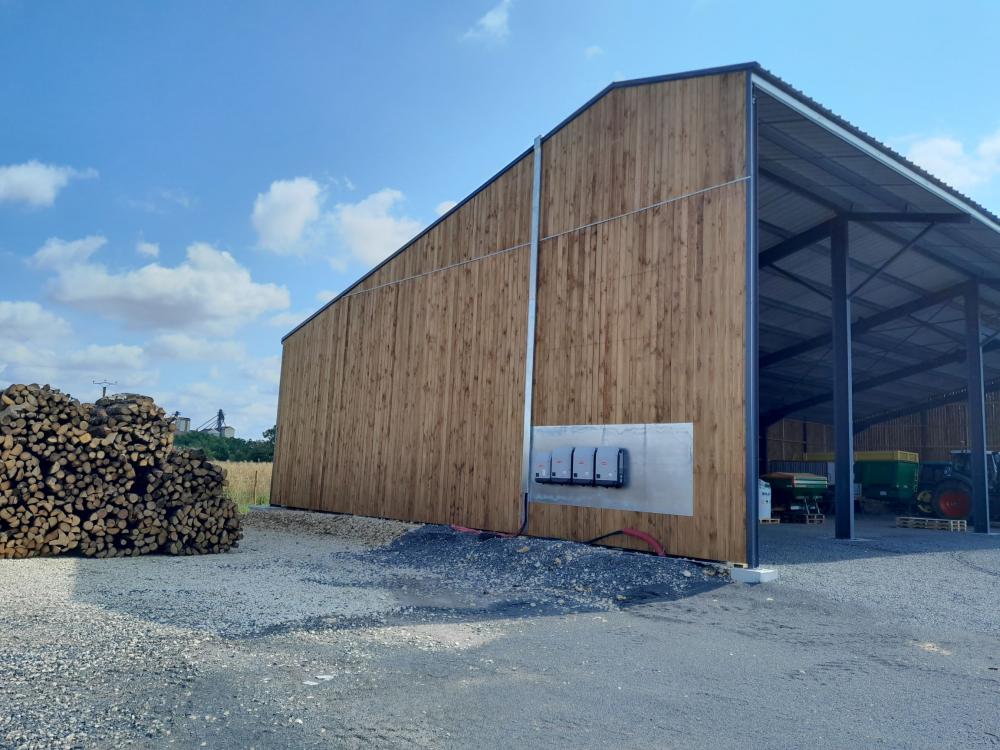 Bâtiment de stockage photovoltaïque faitage désaxé
