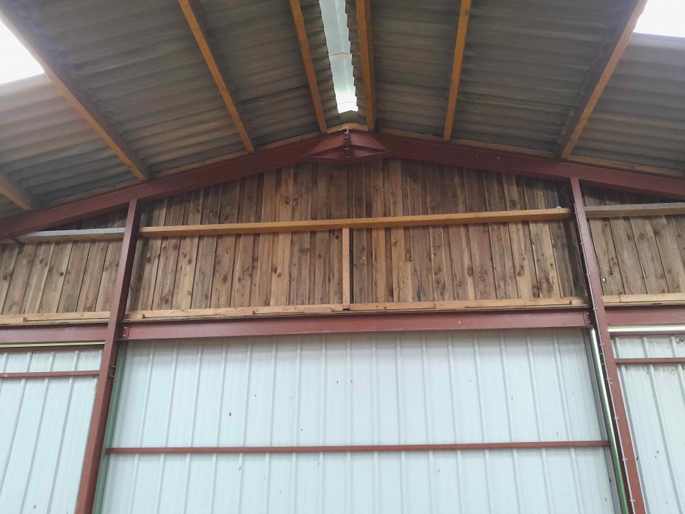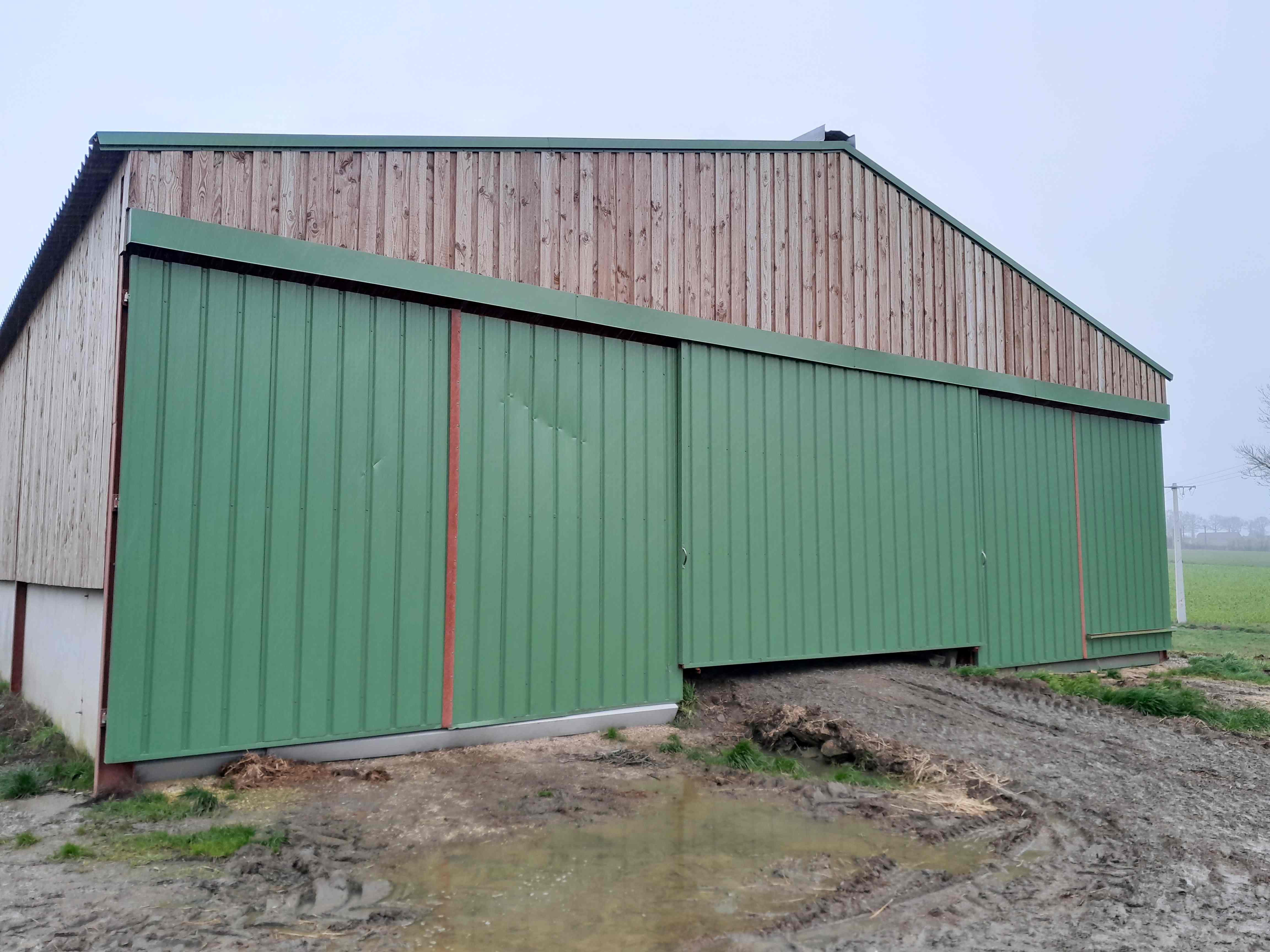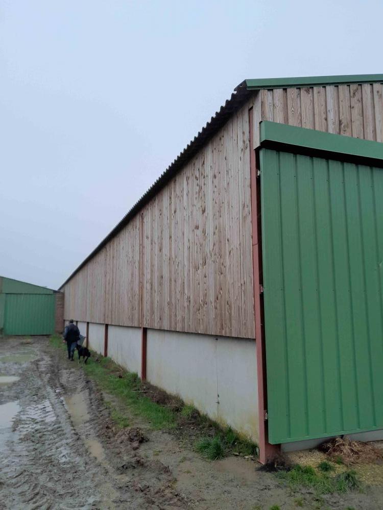 Charpente métallique, pannes obis, couverture fibro, bardage bois