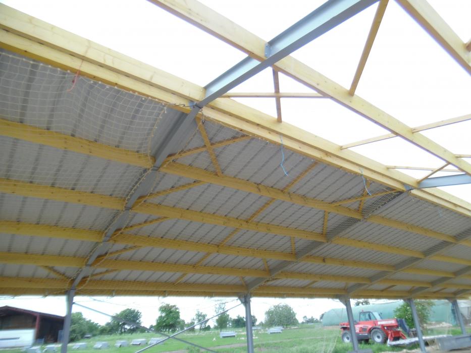 Charpente métallique, pannes bois, couverture tôle