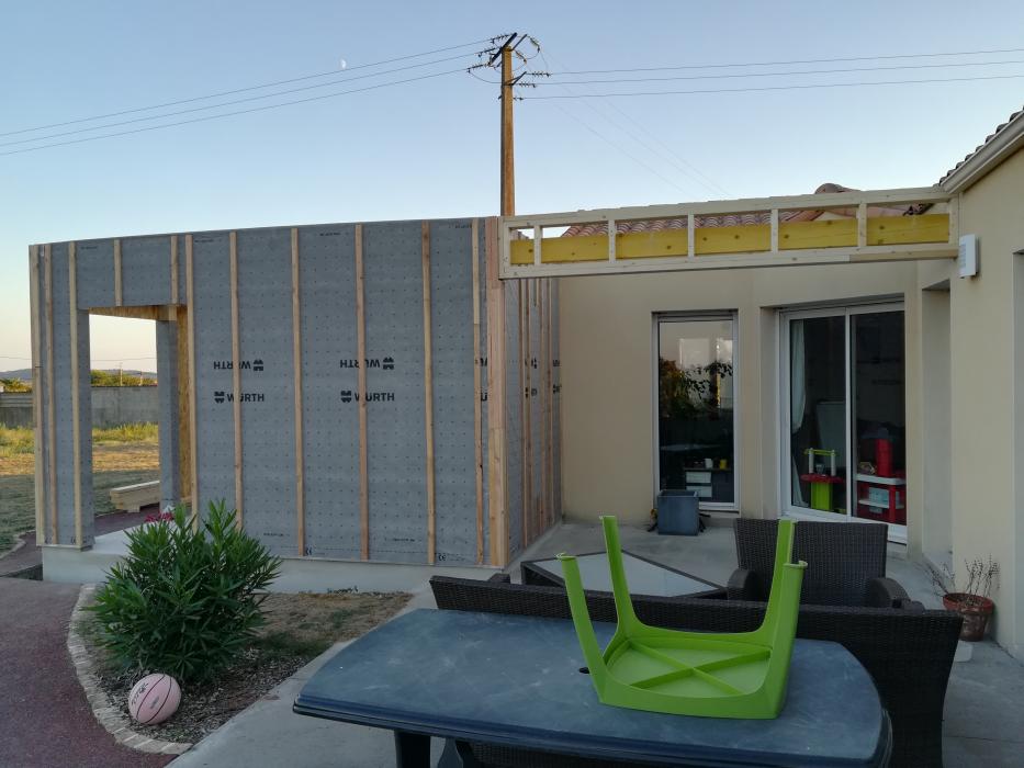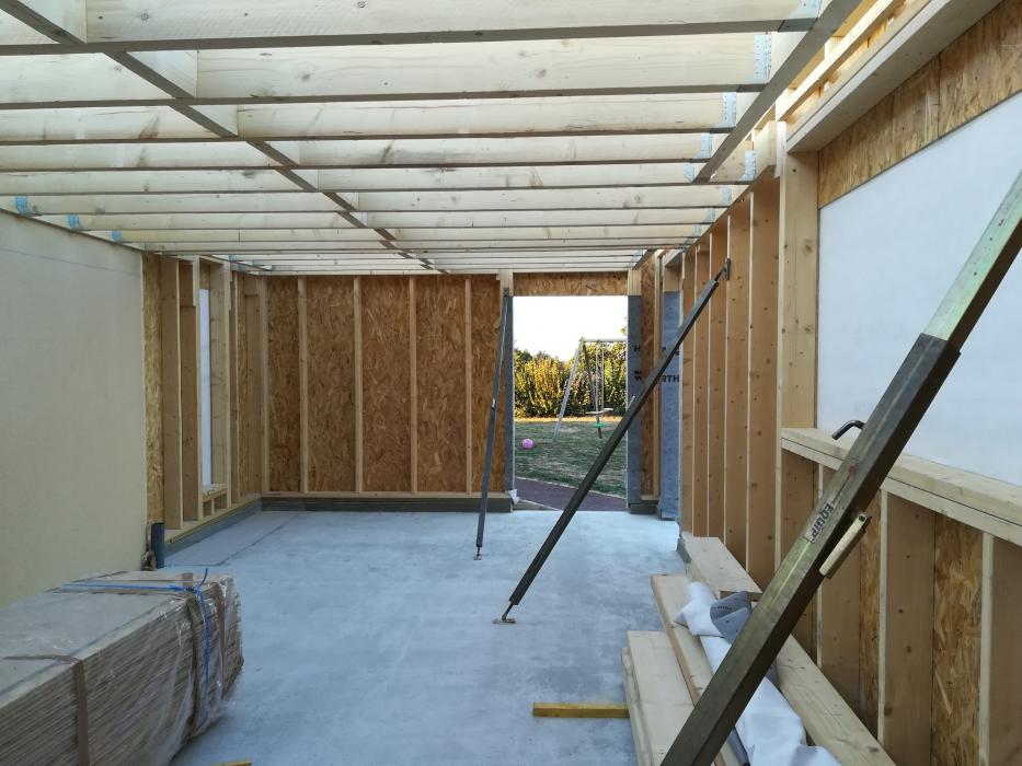 Murs ossature bois, charpente traditionnelle pour toit terrasse