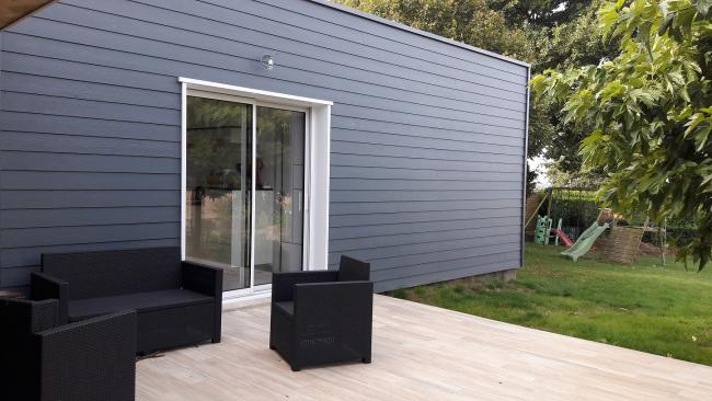 Bardage de type Hardieplank de chez « James Hardie » en fibre ciment section 8/150 à recouvrement