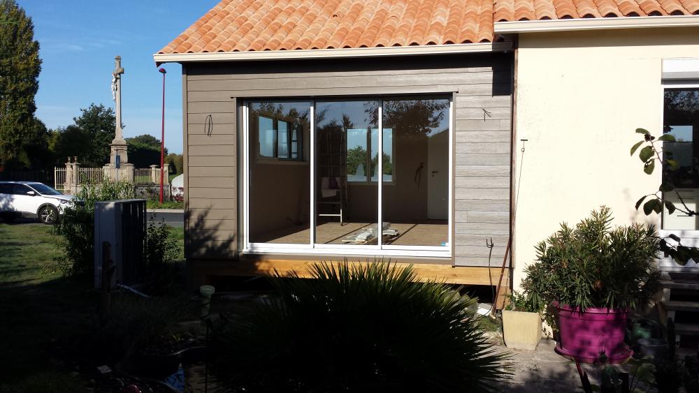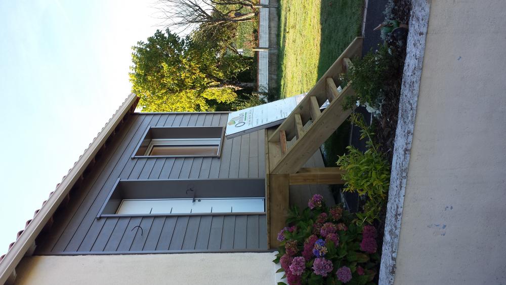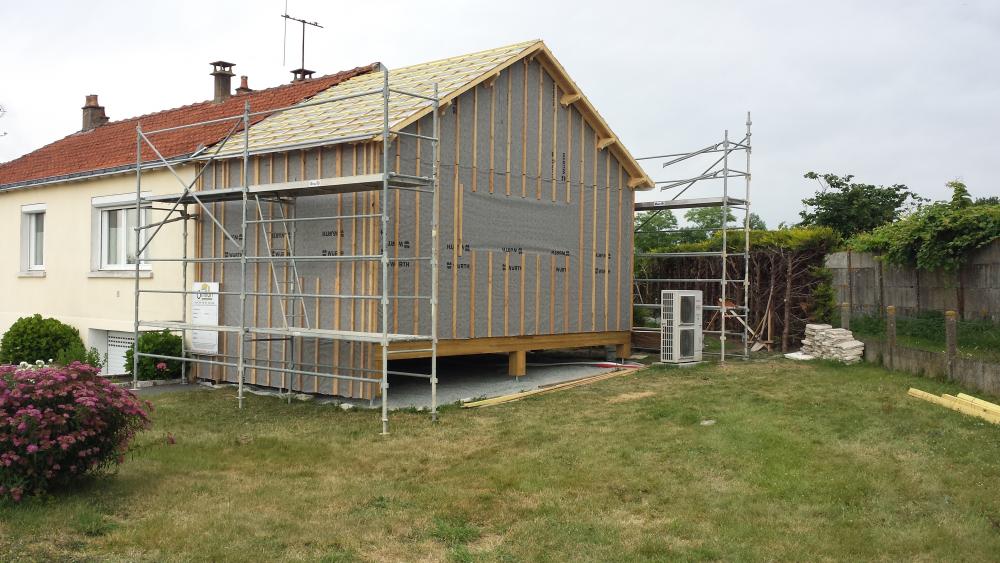 Mur ossature bois, charpente bois traditionnelle bipente, bardage Hardieplank de chez « James Hardie » en fibre ciment