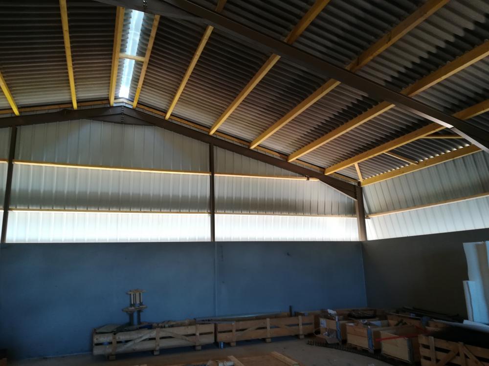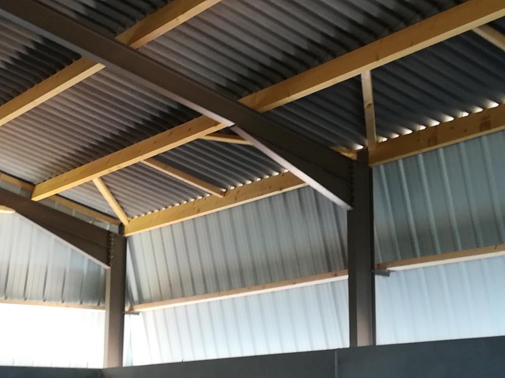 Charpente métalliques, pannes bois, couverture fibro-ciment, bardages tôle