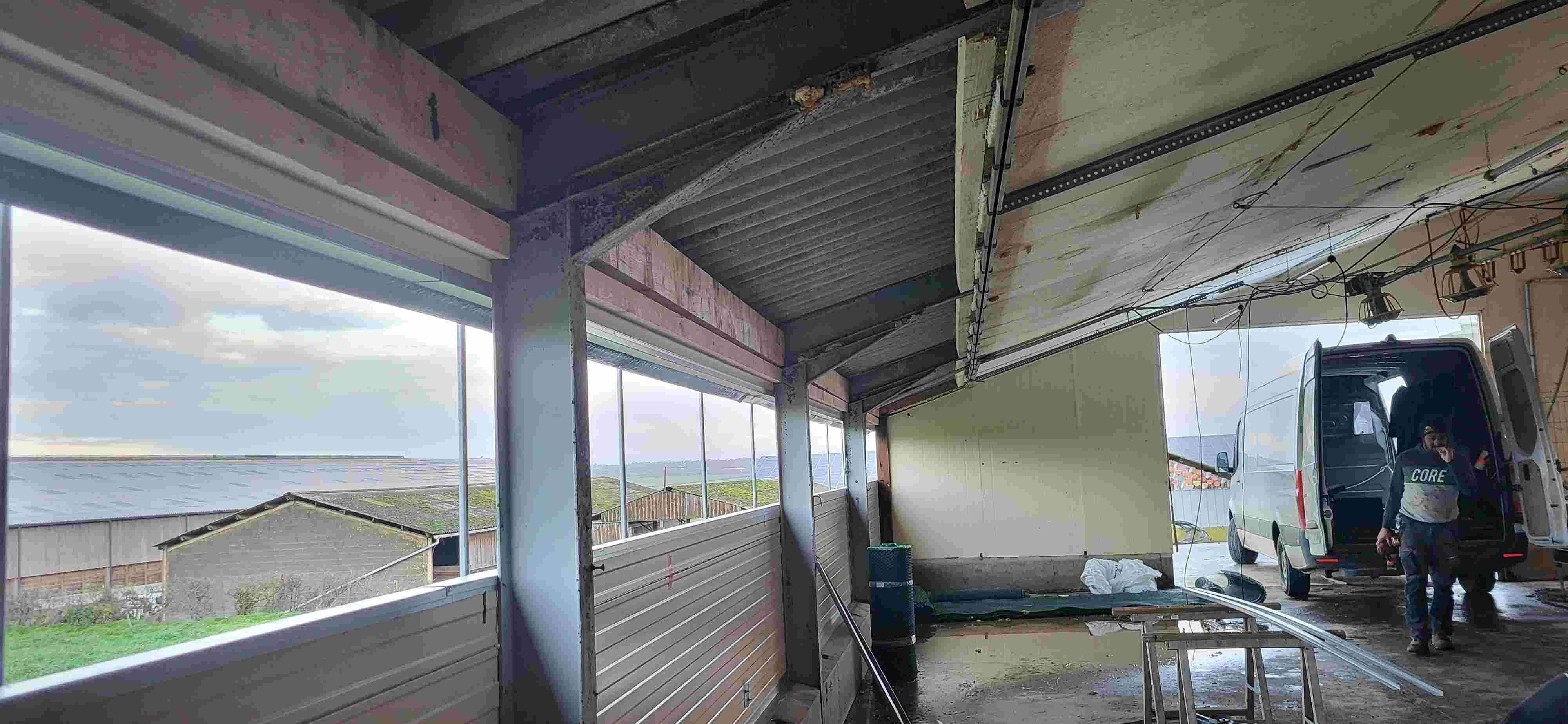Rénovation des lons pans en panneaux sandwichs, plafond en thermagris